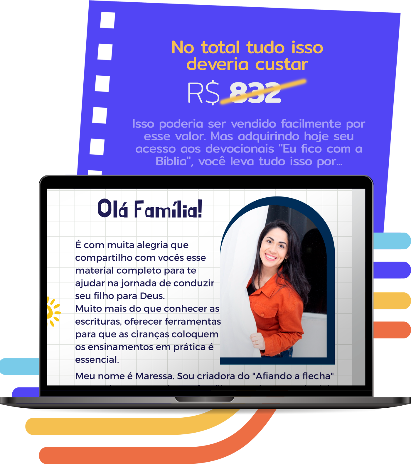 Oi, meu nome é Maressa, idealizadora do "Afiando a Flecha". Já ajudei centenas de famílias através dos meus treinamentos e devocionais para crianças. E acredite, mesmo com todo esse conhecimento eu também não conseguia dar continuidade no ensino bíblico em casa.